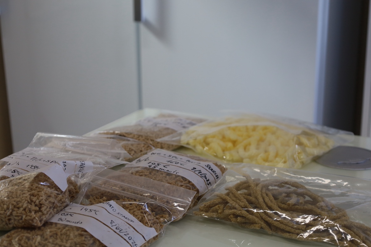 Junto a electrodomésticos habituales como el congelador, el horno, la vitrocerámica y el microondas, otra máquina evidencia que no se trata de una cocina común. Es una máquina extrusora, que transforma materiales alimentarios en productos para introducir en estas recetas del futuro. Lo que a simple vista puede parecer una cocina, es en realidad un laboratorio de alimentación, dentro del Leitat Techological Center, en Vilanova del Camí.